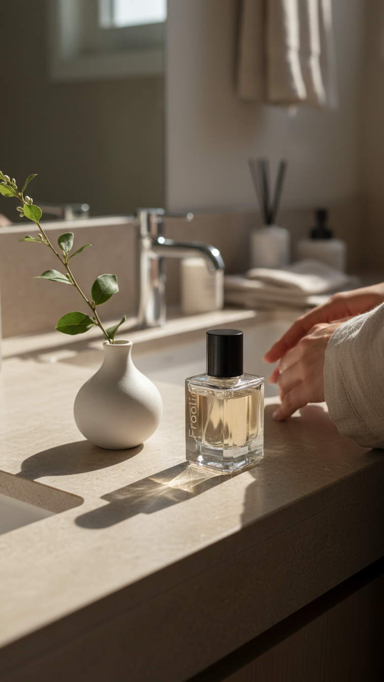 Wrists. Neck. The inside of your elbow. Wherever your skin is warmest — that is where oil comes alive.